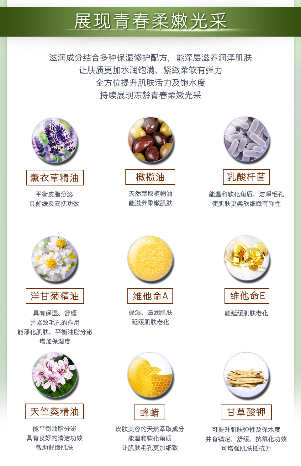 取适量于脸部,轻轻由下往上轻柔按摩至吸收 - 全肤质、敏感肌皆适用