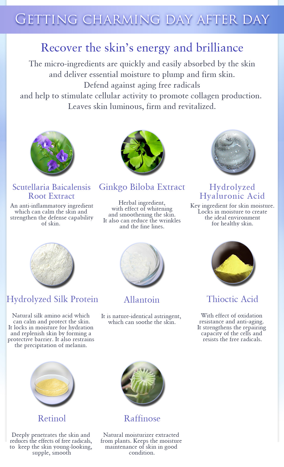 • Recover the skin’s energy and brilliance
